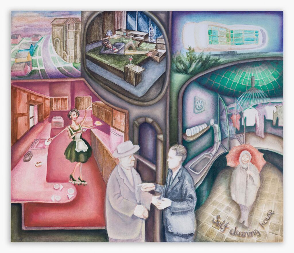 I was interested in the intersection of critiques from post-work theory (which reflects on potential forms of reorganizing societies in relation to the forms and scope of paid labor) with urban and architectural projects that were intended to address social needs by introducing efficiencies in the realm of housework. This image is a collection of […]