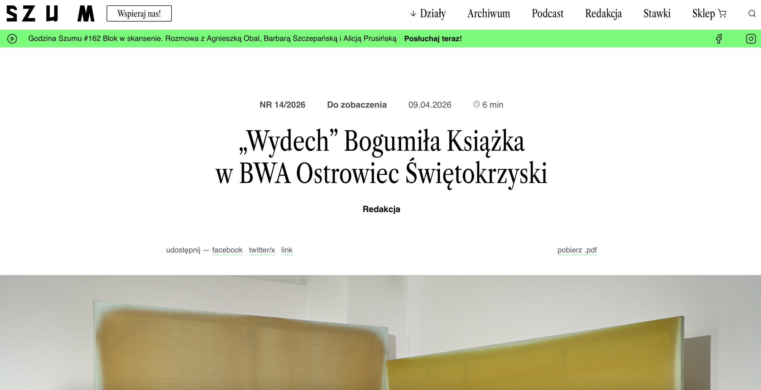 Magazyn Szum | „Wydech” Bogumiła Książka w BWA Ostrowiec Świętokrzyski