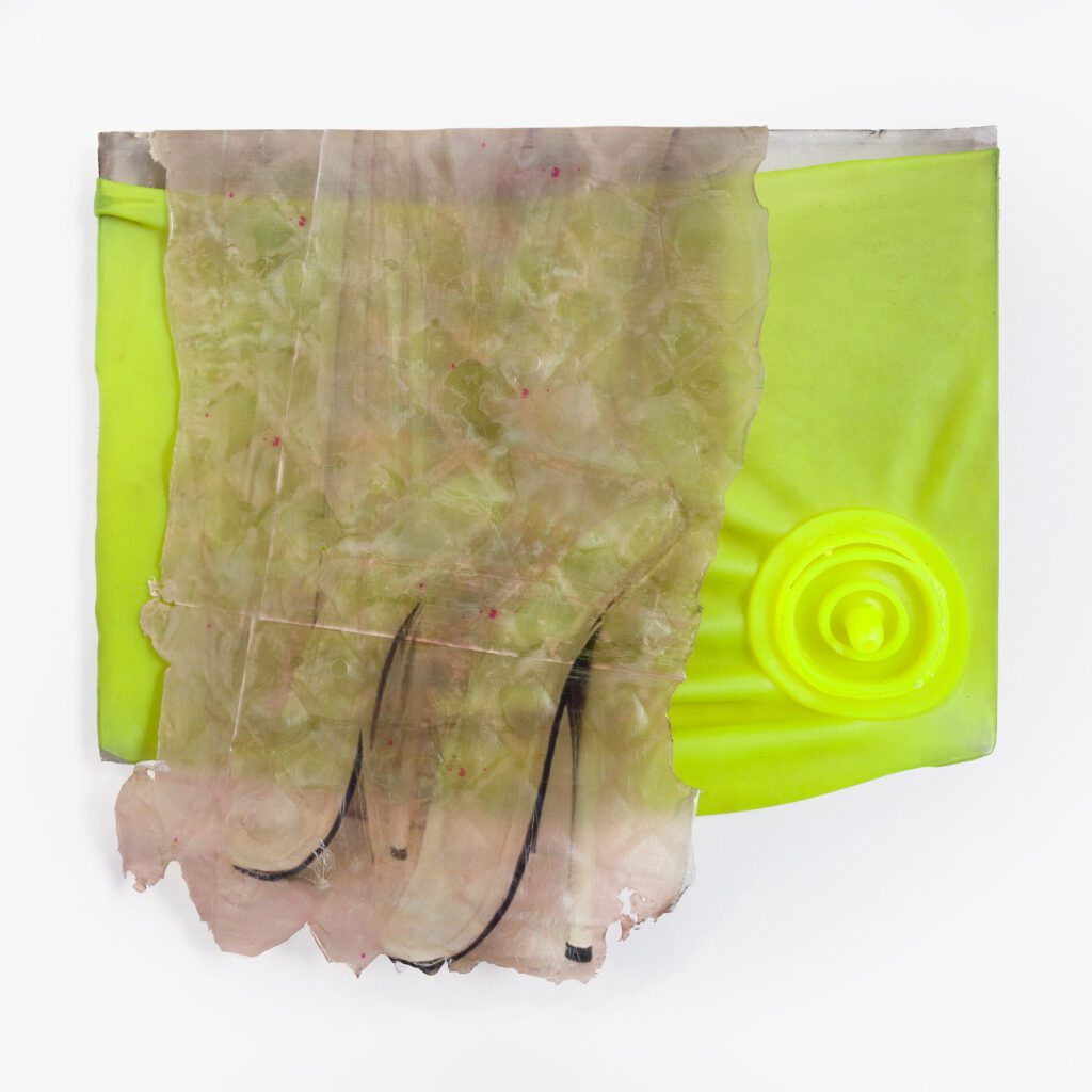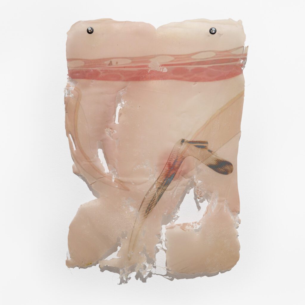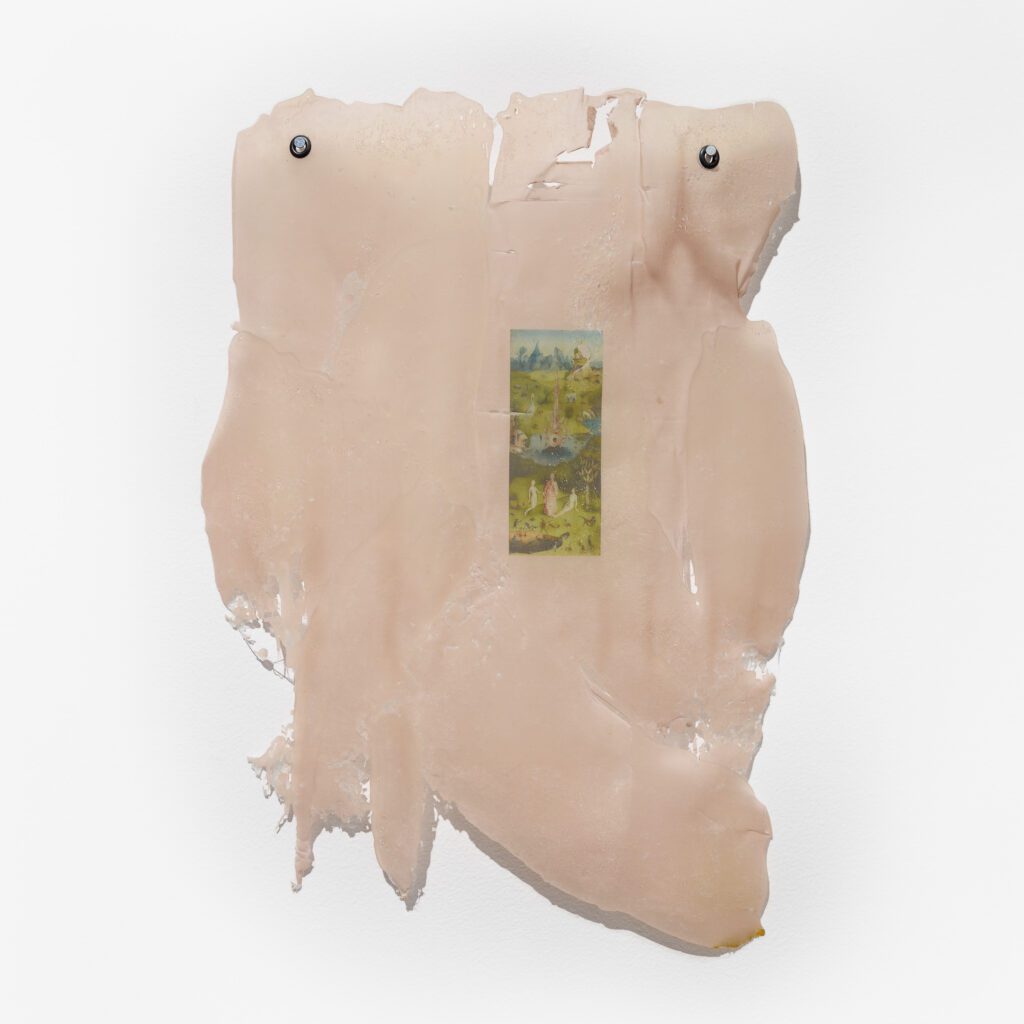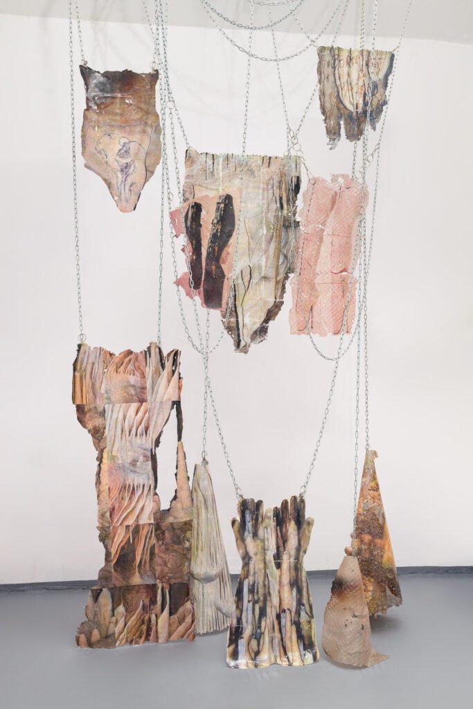 The aesthetics of Szostek’s installations alludes to a post-human, post-body world, in which technology is intertwined with products of nature creating new forms of being. They resemble the terrifying atmosphere in Titane, a film in which all binaries and clear distinctions are blurred, while identities assume fluid, indefinite, constantly germinating and changing forms.