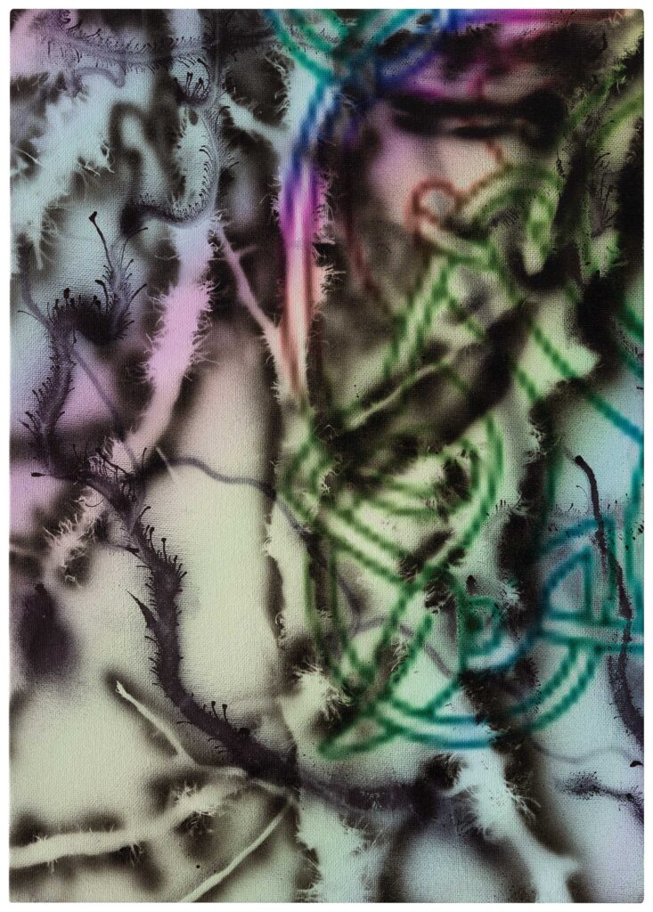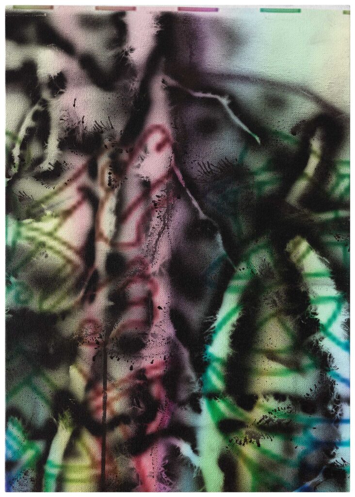 Michael Biber successively develops his interest in the image and post-internet aesthetics. A groundwork for his pieces is formed by a plethora of internet images we scroll through on a daily basis. Superimposed, they create an abstract noise that makes individual meanings impossible to discern. Digital colours become a spectrum of his novel palette. The artist experiments with digital prints, sampling and mash-ups of internet imagery in combination with traditional painting techniques.