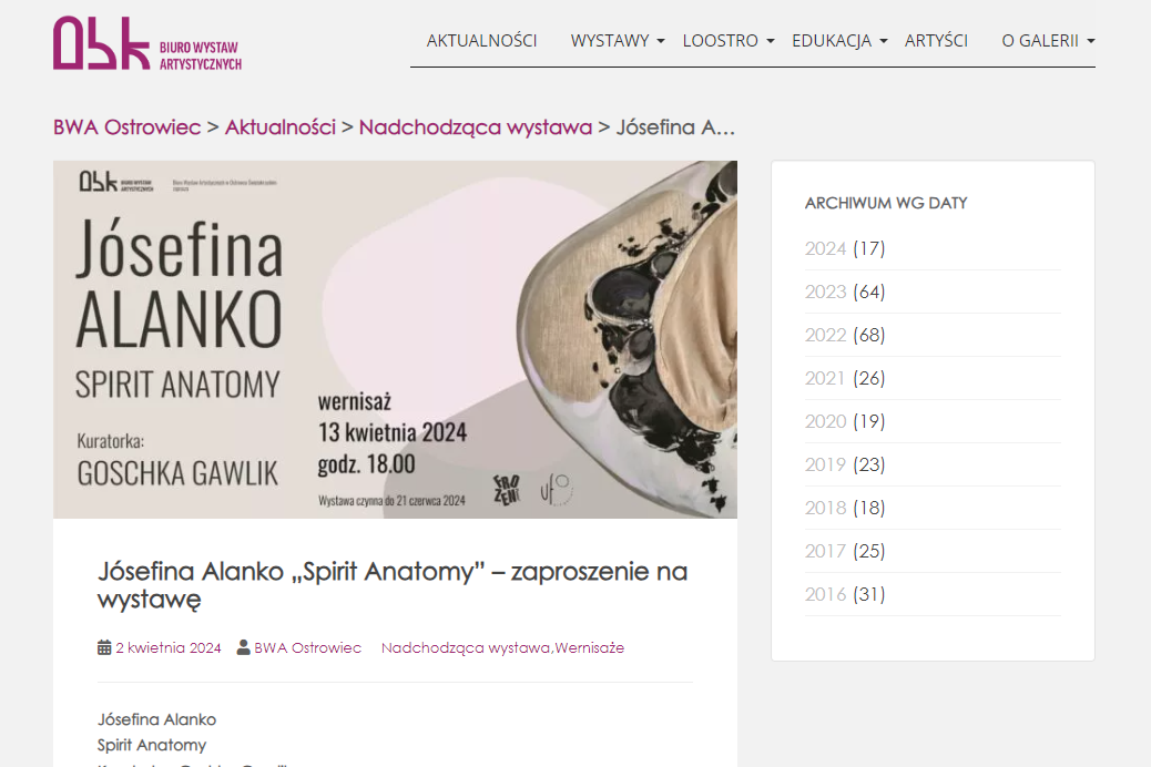 Jósefina Alanko „Spirit Anatomy” – zaproszenie na wystawę