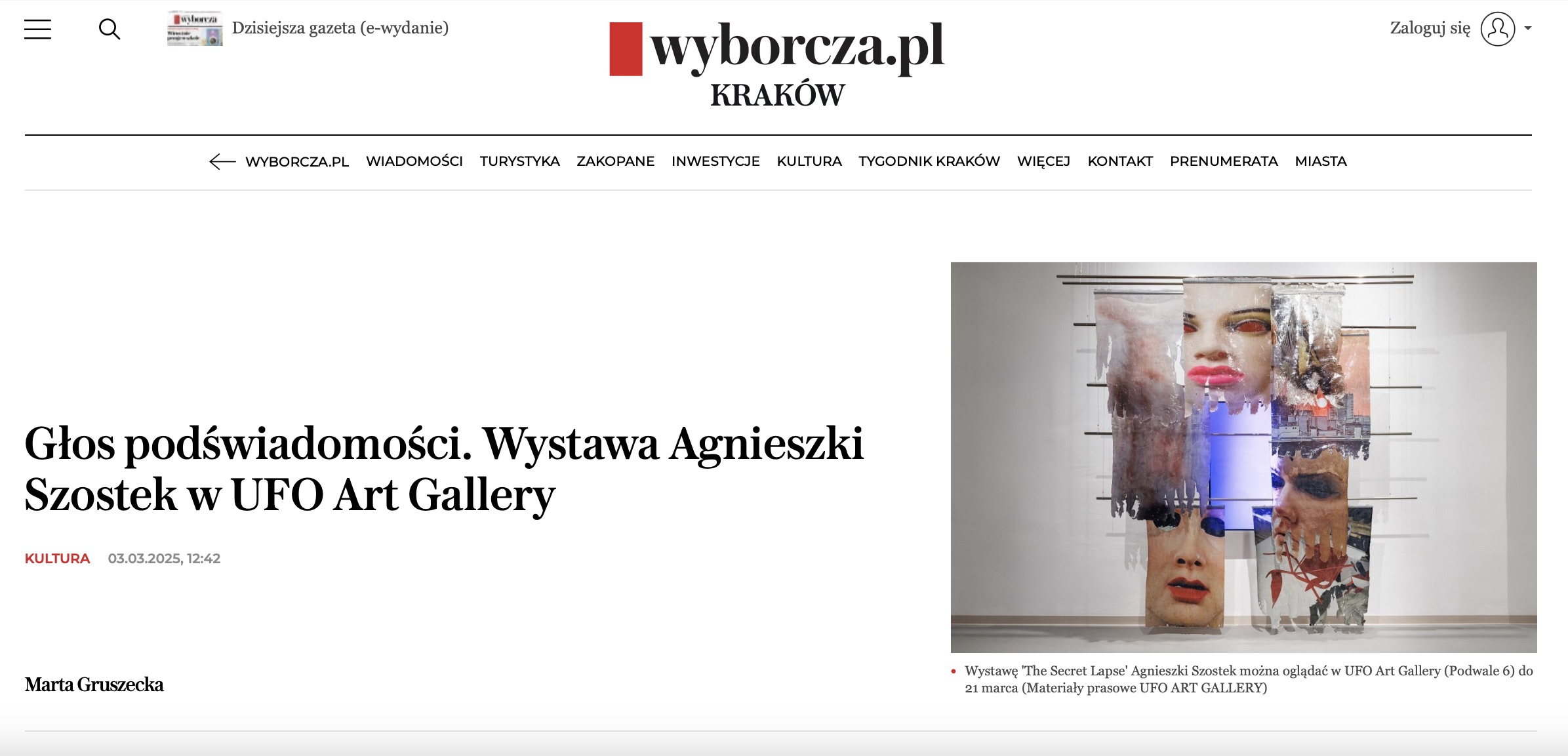 Gazeta Wyborcza | Głos podświadomości. Wystawa Agnieszki Szostek w UFO Art Gallery