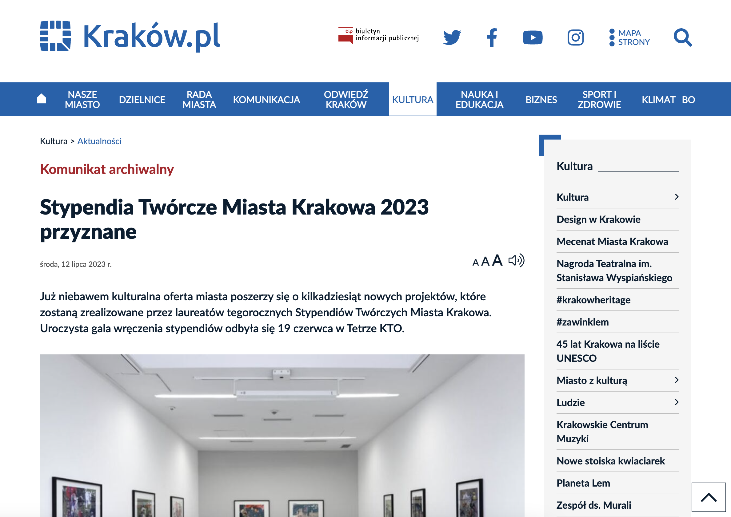 Stypendia Twórcze Miasta Krakowa 2023 przyznane