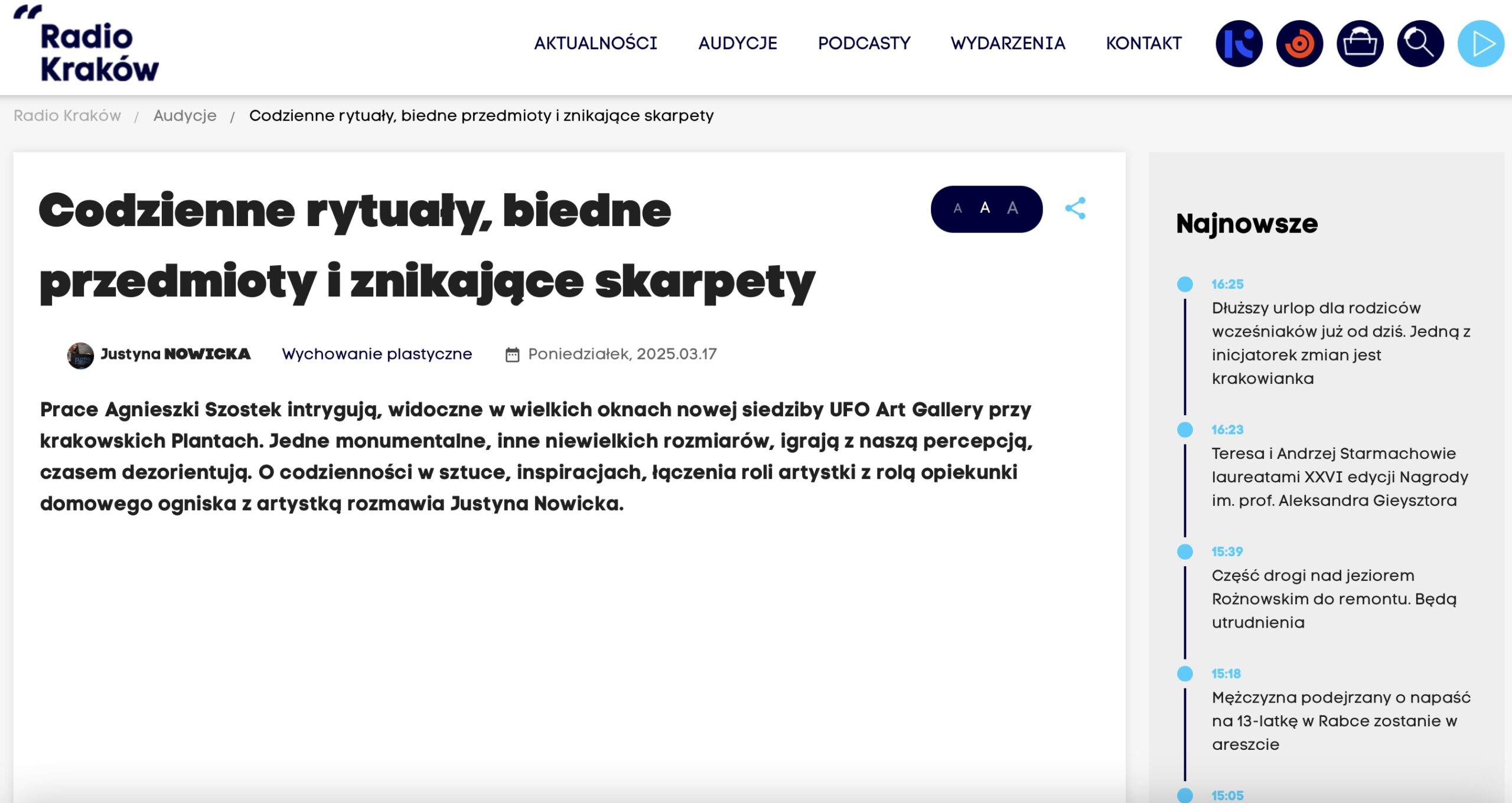 Radio Kraków | Codzienne rytuały, biedne przedmioty i znikające skarpetki | Justyna Nowicka