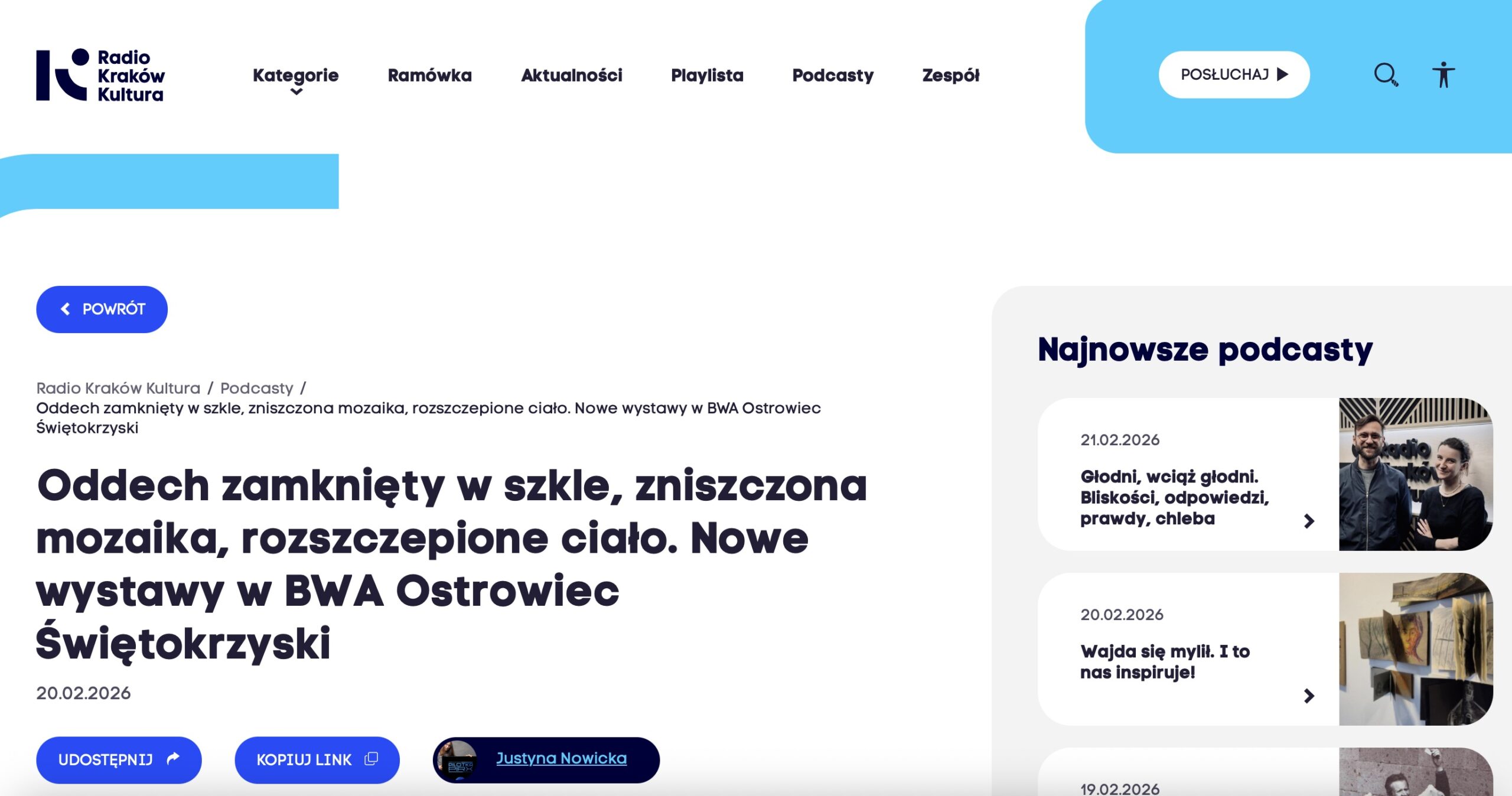 Radio Kraków Kultura | Oddech zamknięty w szkle, zniszczona mozaika, rozszczepione ciało. Nowe wystawy w BWA Ostrowiec Świętokrzyski | Justyna Nowicka