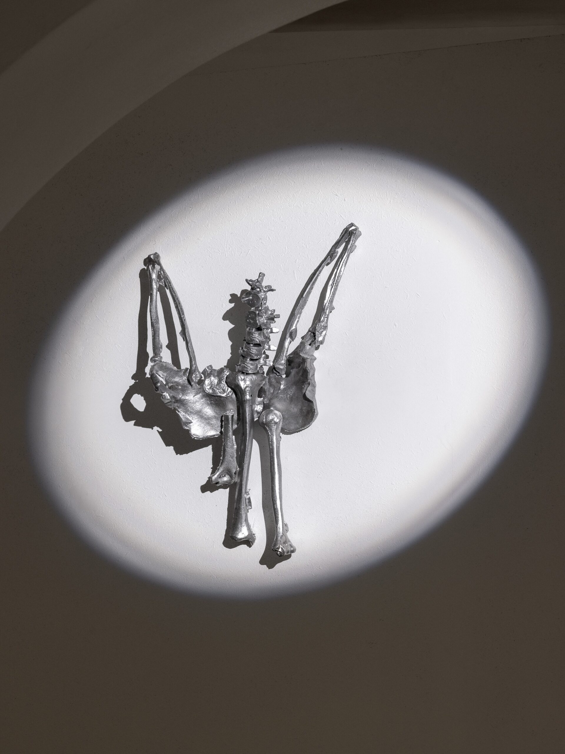A dead bird made of human bones. A coat of arms cast from melted beer cans. Memento Mori. In the eighteenth century, ossuary chapels filled with intricate constructions of human bones became important landmarks on Europe’s penitential and artistic map. Places such as the Sedlec Ossuary in Kutná Hora and the Chapel of Skulls in Kudowa-Zdrój, inscribed within the vanitas traditions of the era, served as reminders of the horrors of death, whilst clothing it in elaborate forms constructed from human remains. Okoński’s ossuary likewise commemorates death, yet perceives it as an absurd and grotesque moment — one so passionately celebrated in Polish martyrological ritual.